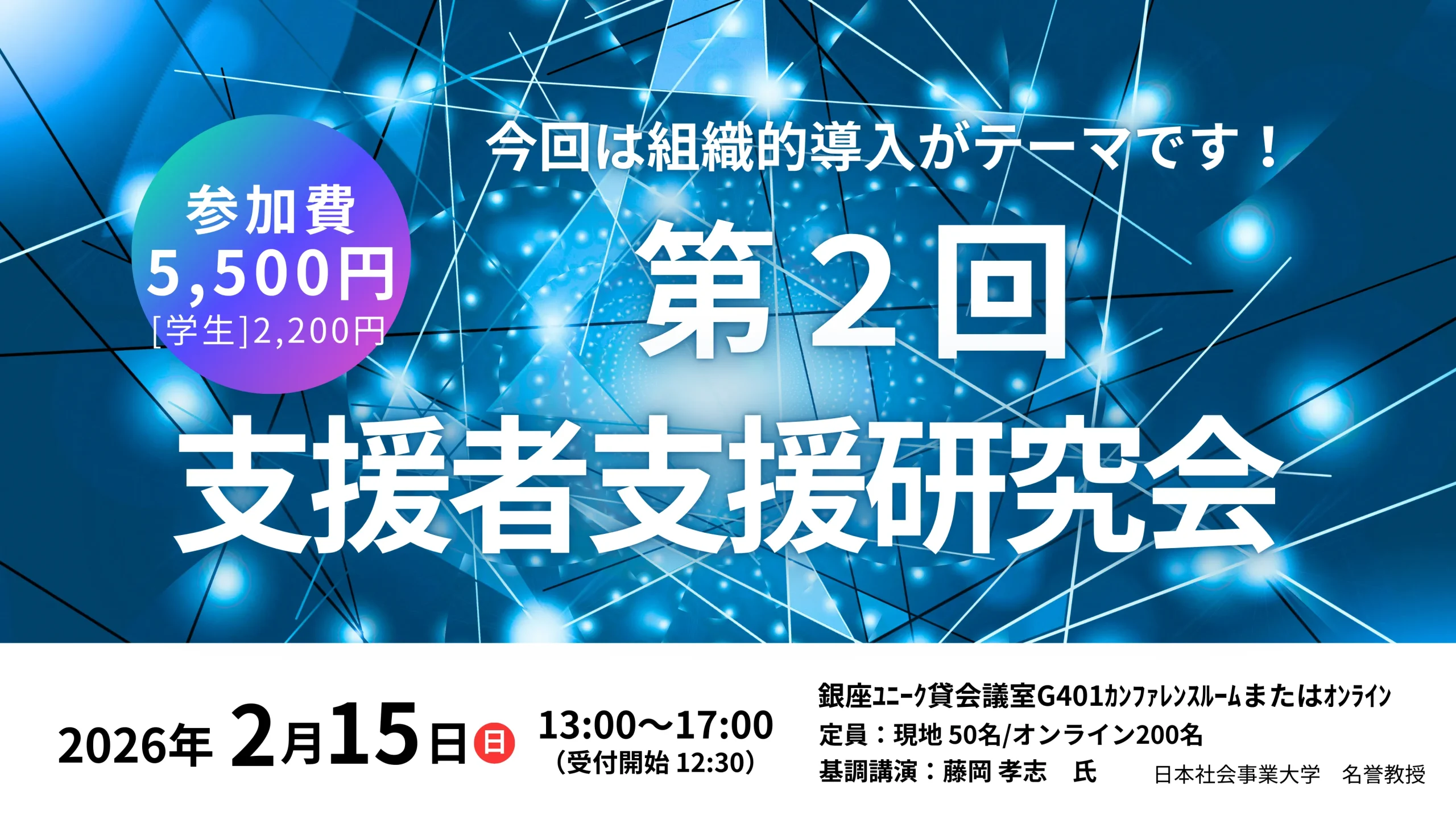 2026年1月20日 / 最終更新日時 : 2026年1月20日 kodoken-website イベント情報【公開講座】第2回支援者支援研究会の開催 この公開講座は、児童相談所等の子ども家庭支援のための機関や児童養護施設等の子どもの入所施設の職員向けの専門的な講座です。「支援者支援コーディネーター養成講座」を受講された団体や職員の方々の学びや実践内容を共有し、支援者支 […]